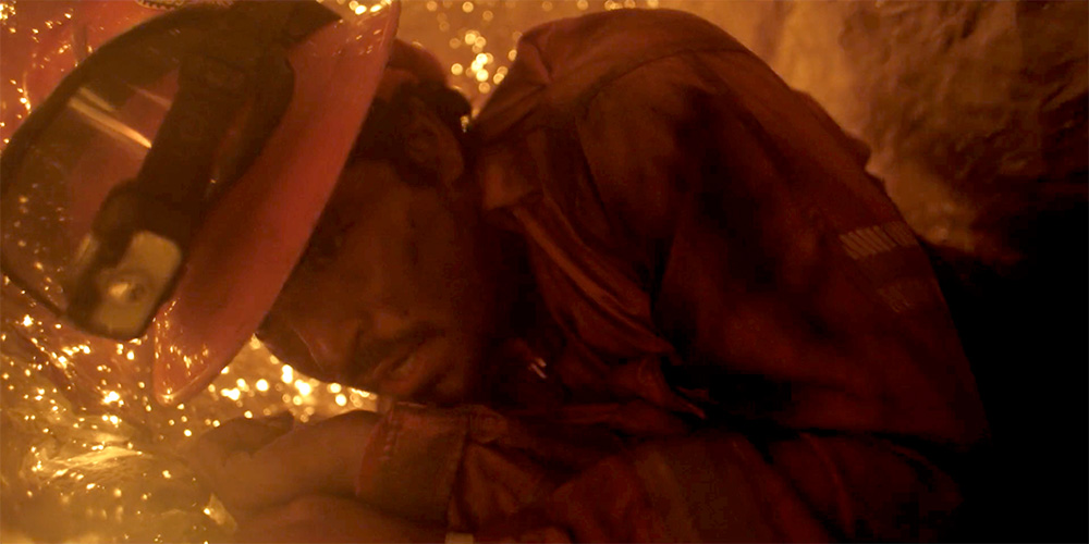 A peaceful hospital scene with Alice the Android (played by Megan Fox). Everyone is waiting on the status of mom. Things later go berserk-o.