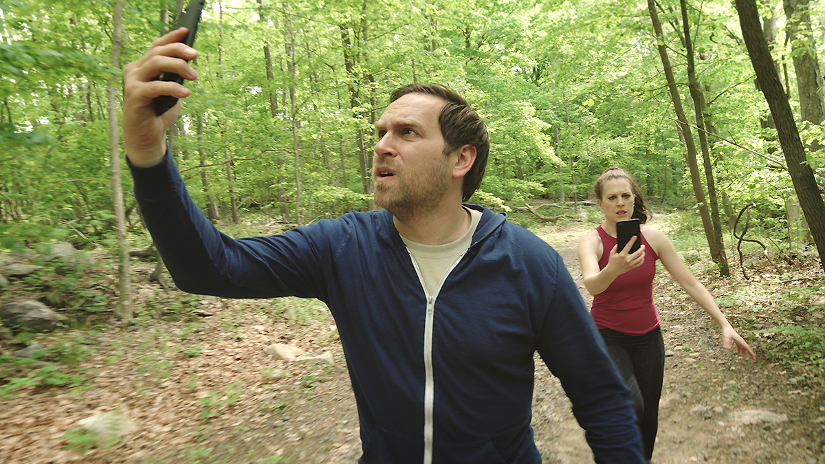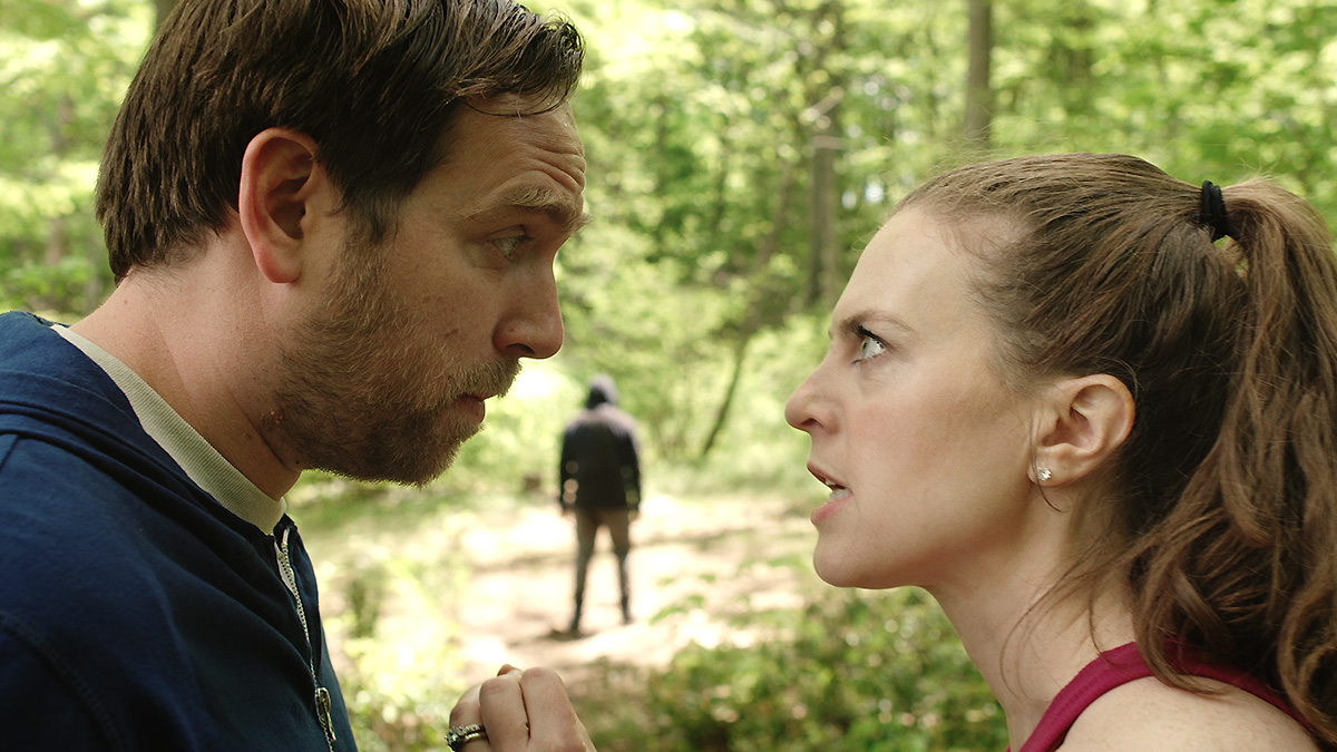 BRIGHTWOOD opens with a jogging, garrulous Dan (Max Woertendyke), who is in poor shape, lagging behind his wife, Jen (Dana Berger) who is in better shape than he’s in. Both are in a pissy mood though Jen is in a higher dudgeon as they cruise along a trail that circles the local pond. Dan and Jen have been married 9 years. No kids, no regrets. Both are addicted to porn because their sex lives suck, they tell each other.
