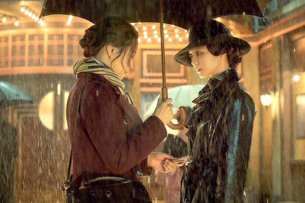 One of several exquisitely photographic scenes; silent and equally enigmatic. What are these two femme falale spies expressing without saying? What is Director Lee Hae-young up to?