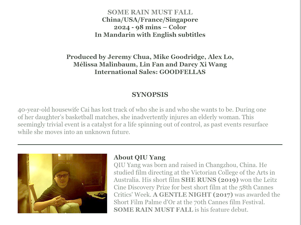 Best Performance in an International Narrative Feature: Yu Aier for Some Rain Must Fall (China) – North American Premiere. Jury Statement: “For her beautifully sustained performance of unabated suffering.”