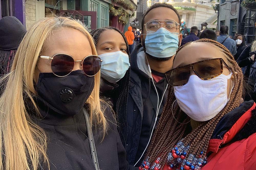 Harry Potter World, Orlando, Florida. Family selfie. Mom at left, little sister second right, big brother, and me. Family selfie by Diana Olivares