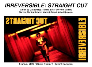 Excerpt from the production notes: “On the original release of IRREVERSIBLE, critics responded vehemently, and the relationship between the violence of the film and its form was central to how it was perceived and valued. However, as yet, there has been little critical response to the Straight Cut and, as a result, there has been little discussion about how the revised structure impacts on the film’s meaning and the permissibility of its depiction of violence.”