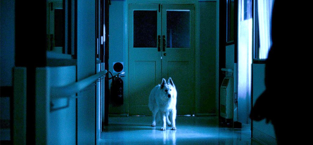 This reviewer was told that this scene shows an ailing dog looking to have a conversation with a veterinarian about death. A talking dog? Uh oh and wow! It turns out that this may or may not be a dream sequence. The blurred shadow of the veterinarian partially seen at the far right.