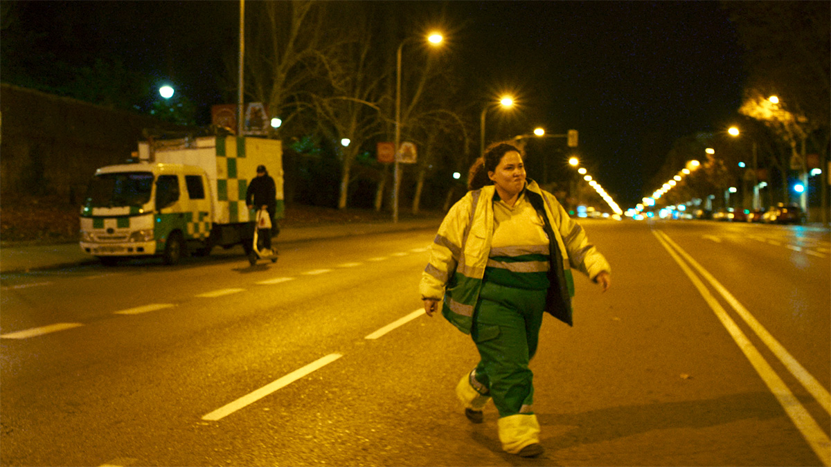 “When I saw VICTORIA, a (2015) German film made in one long sequence shot about (one night) in the life of a (woman) in Berlin, I knew I wanted to tell a story in that way, with a female street cleaner as the main character. That’s how Adela was born.”