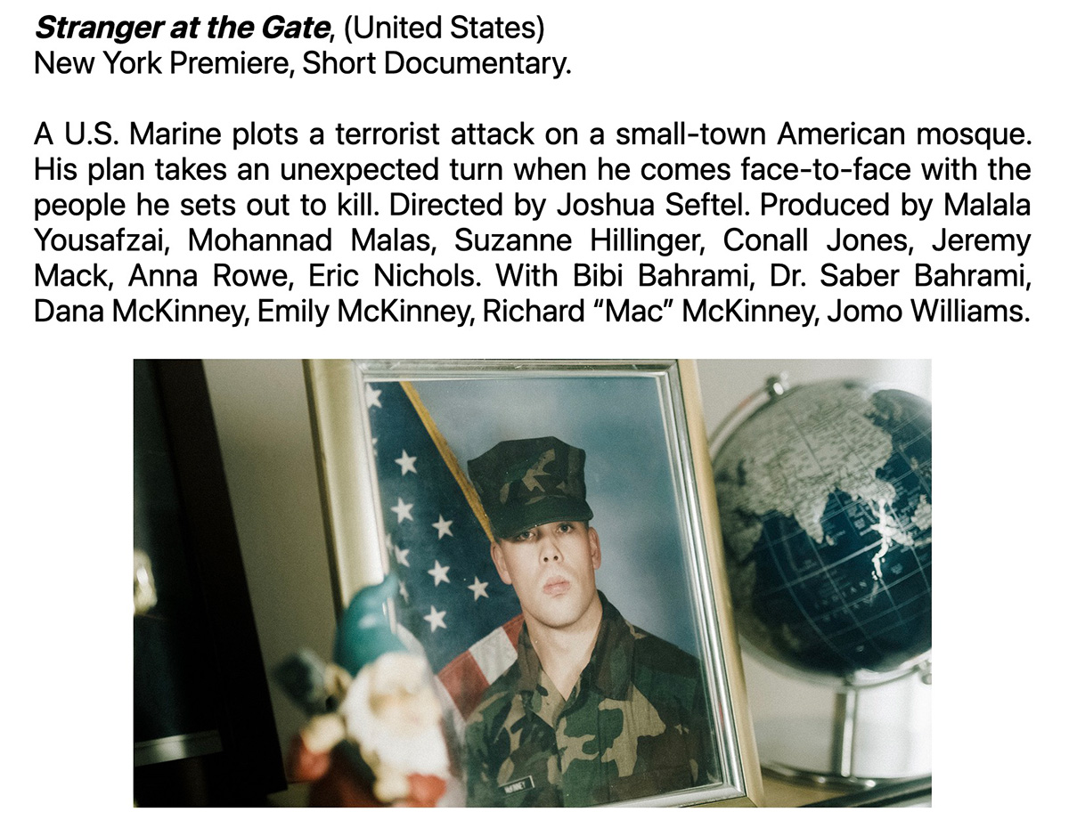 How Did You Decide to Tell This Larger Than Life Story? I was drawn to Richard “Mac” McKinney’s story from the first time I heard it. He was a US Marine suffering from PTSD and filled with hatred who planned to blow up the mosque in his small Indiana town. Before this film, I had even made a bite-sized short film where he succinctly tells the story from his point of view. But I always thought it would be meaningful to hear this story from the perspective of the congregants of the Islamic Center that McKinney planned to bomb, and to hear from McKinney’s wife and daughter.