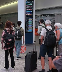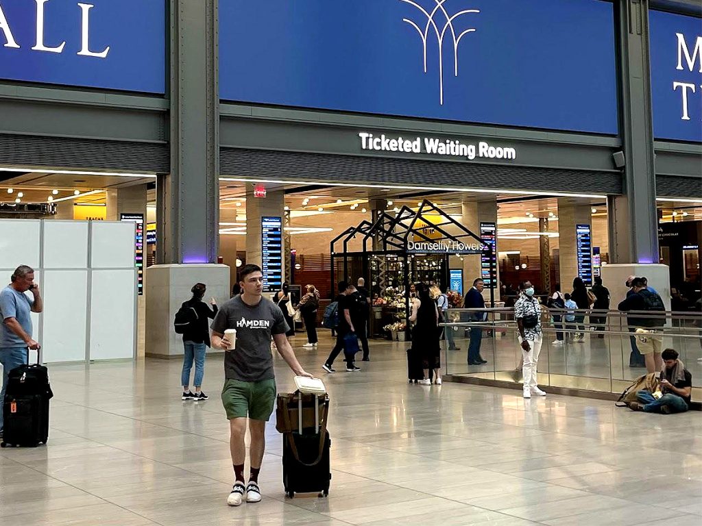 At about 6 p.m. on a Monday, the ticketed waiting area was full as it often is during peak times. Other commuters, like Funn, who couldn’t get a seat could be seen sitting on their suitcases, leaning against any available surfaces, standing or sitting on the floor.