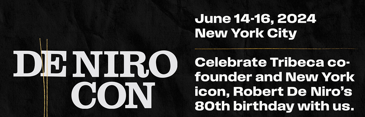 The full De Niro Con lineup is below. For the latest updates follow @Tribeca and #DeNiroCon on Twitter, Instagram, Facebook, and LinkedIn, and to become a Tribeca Member or purchase passes and tickets for De Niro Con, go to https://tribecafilm.com/denirocon.