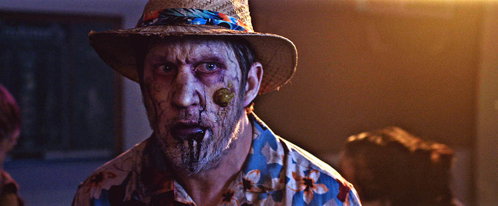 Yeah, the broadness of the comedies allows us to have Rose turn into a zombie, seamlessly. Because it’s what happened to her, what she imagined she should be during this apocalypse. And then the guys that dressed up like PULP FICTION guys gave us the ability to just switch right into PULP FICTION because that’s the way they believe they should dress. [Director Andy Palmer] probably told them, ‘I want you guys to dress like PULP FICTION’ And so it allows us to explore the different genres within a mafia-zombie-apocalypse film. And that’s how we were able to add all the ingredients and have it all. The broadness of the comedies.